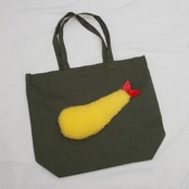 大きくて沢山入るトートバッグに、大きなふわふわのエビフライをつけちゃいました。